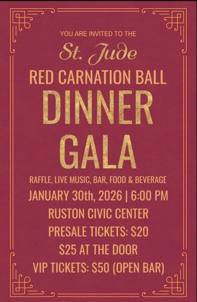 The St. Jude Red Carnation Ball is a dinner gala with formal attire for all to enjoy. With tickets starting at $20, it will give you access to the cash bar, a great catered dinner, the opportunity to win big items in our raffle, and live music during the event. For $50, you can get a VIP ticket that will give you everything above, along with open bar access. This event is meant to enjoy, and it gives the opportunity to enjoy a night out, while supporting something great, like St. Jude Children’s research hospital. We hope to see you there!